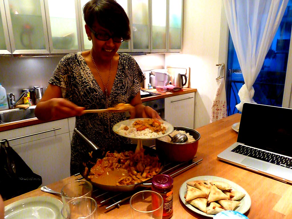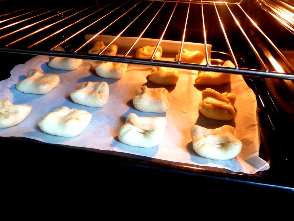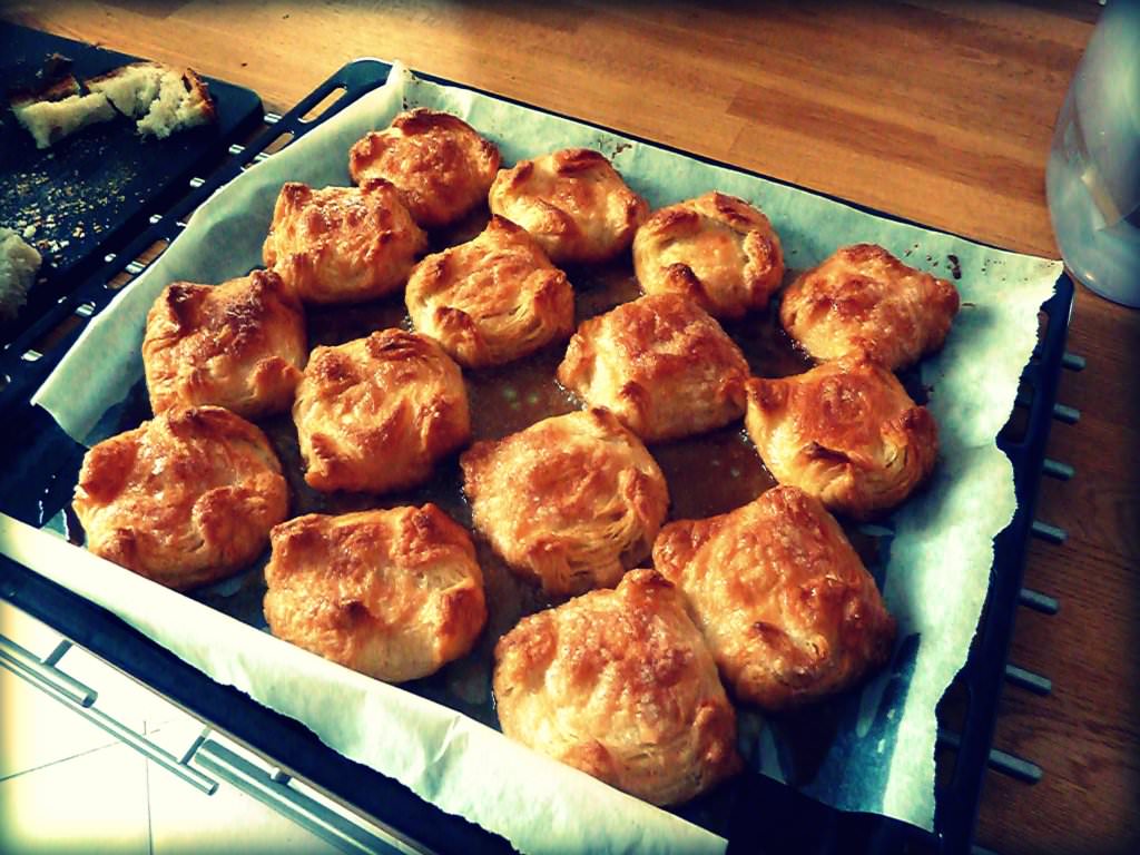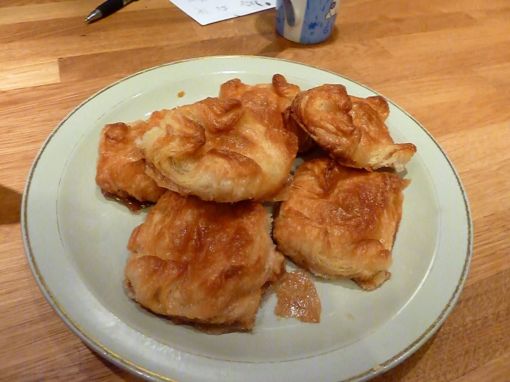 Last week I was invited to Chantelle’s place who has an oven (!). I just happened to get someย Kouign-Amann dough ready for baking from the restaurant. These are cookies which are the specialty of Breton and made with bread yeast dough, butter and sugar. When baked they spread and the sugar melts down to caramel and sticks to the bottom of this puffy butter pastry. They make it in Ledoyen and we usually get to eat these which didn’t look good enough to serve in the restaurant. They are pretty great! So I brought them over to Chantelle’s oven and other girls’ mouths and tummies.