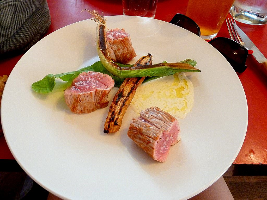 The daily lunch menu is based on a 4 course meal. There’s a different menu every day but no room for a choice between different options. The costumer is only free to choose how much he wants to eat. 19.50 euro for all four courses, 10 euro for just the main course or 13.50 and 17 euro for any other combination. You can choose the protein for the main course out of two options. We had a white fish merlu or veal. I took the whole four courses menu of course!