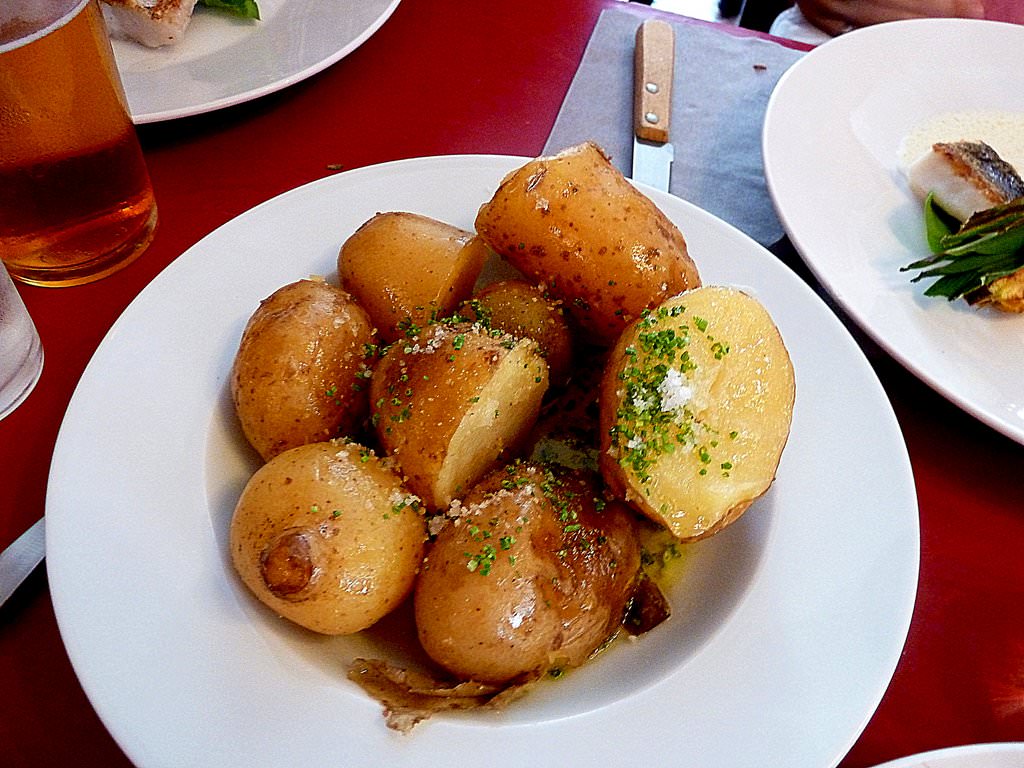 With the main course we received to the middle of the table a big plate of potatoes. The potatoes, as simple as they are, were excellent, perfectly cooked with smokey olive oil, chopped chives and rock salt. Made us forget all about the first course stumble.