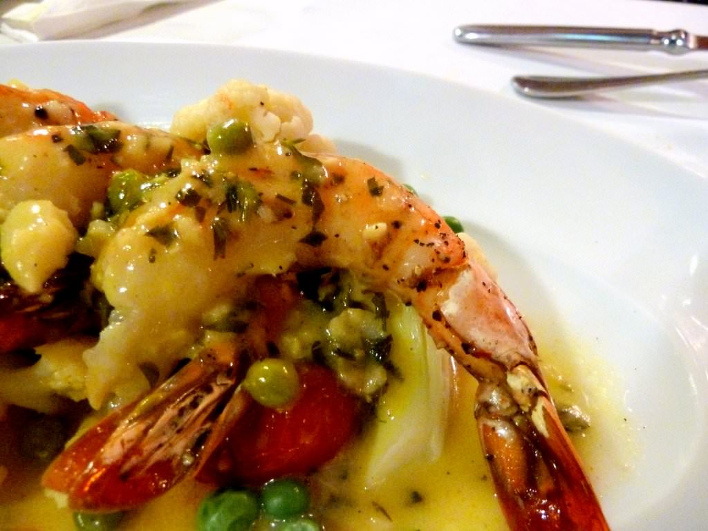 I’m pretty sure this dish we got was very far from the chef’s intentions. The sauce was another thick heavy sauce and not a delicate fish stock at all. The jumbo shrimp were good quality but overpowered by huge chunks of cauliflower.