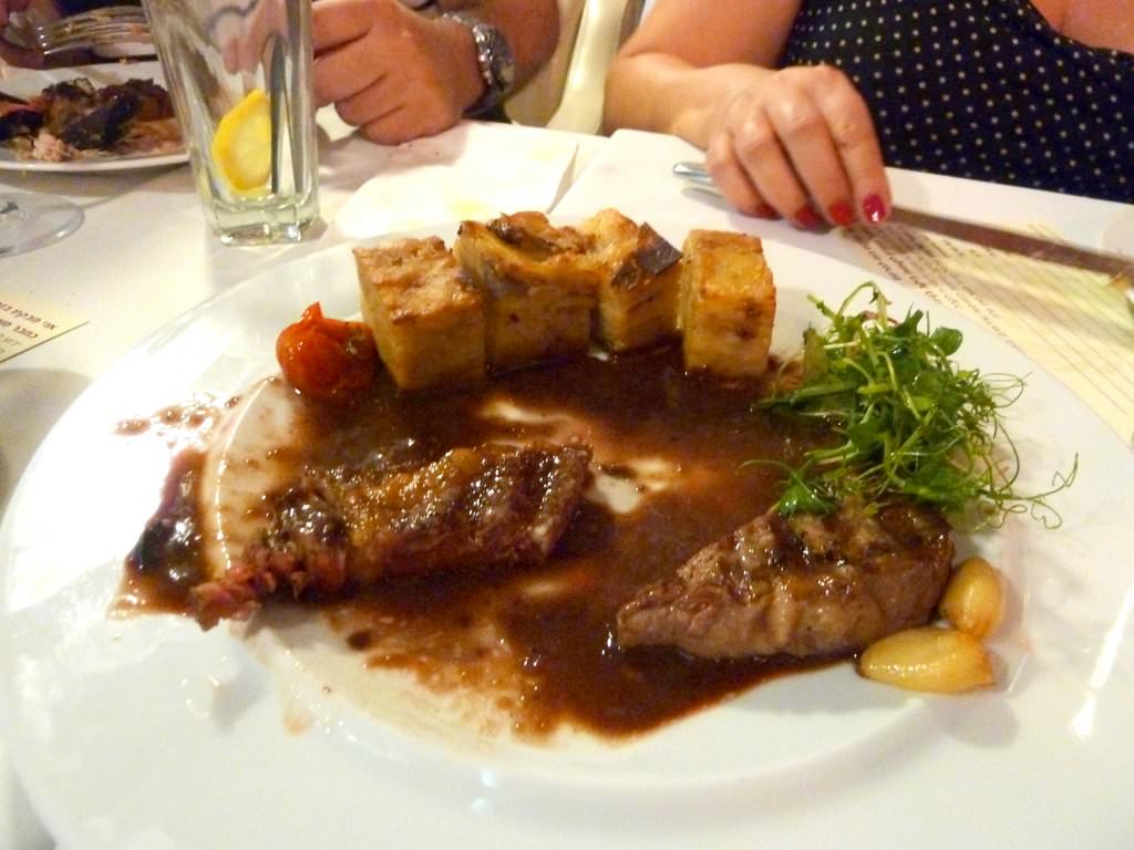 Finally we got the meat dish, too bad we were too full because the steak was very good and well cooked. The potato gratin was horrible. The sauce was like the other dishes, heavy.