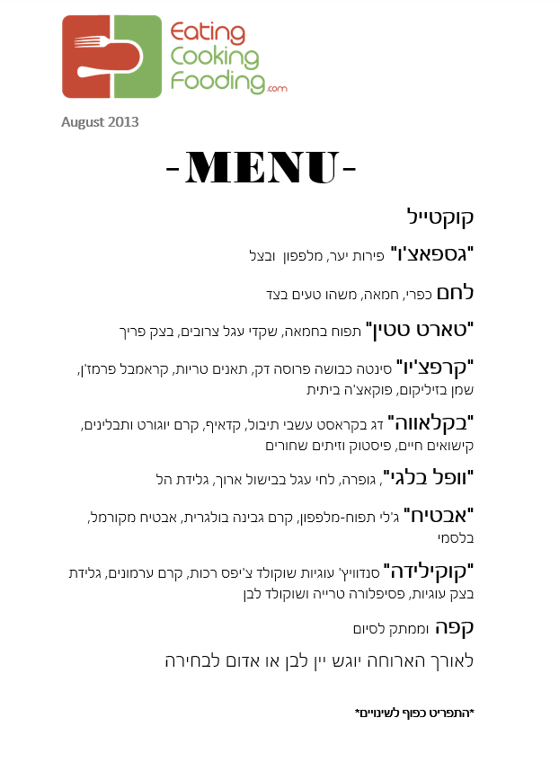 4. התפריט שפורסם מראש עשוי להשתנות בהתאם לזמינות בשוק.
