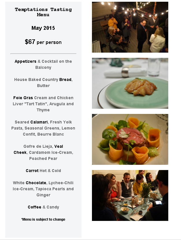 Join us for a seasonal temptation dinner, ingredient inspired, modern take on French cuisine. The dinner will take place only two nights, communal seating, bring your own wine.